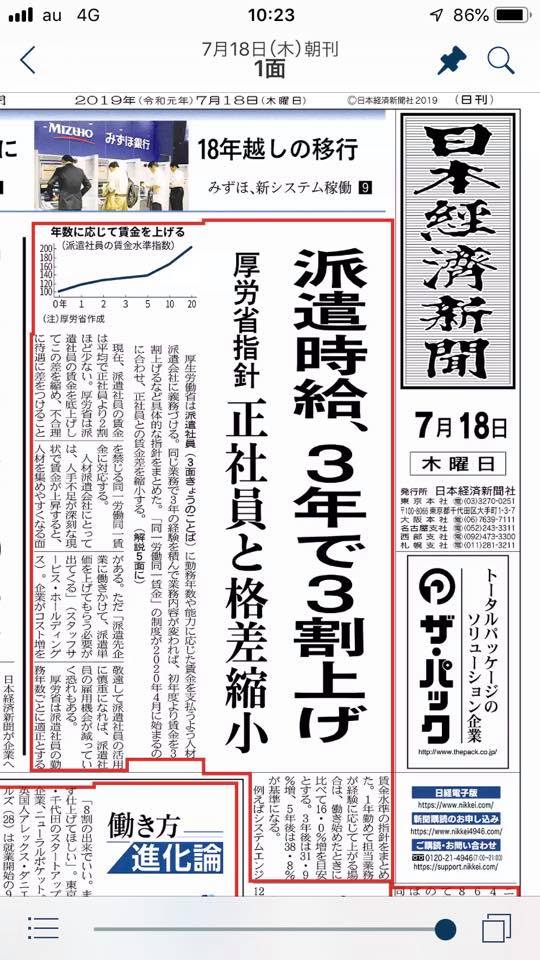 先日出た、労働新聞1面にも同様に派遣法改正ネタが出ております... 続きを読む