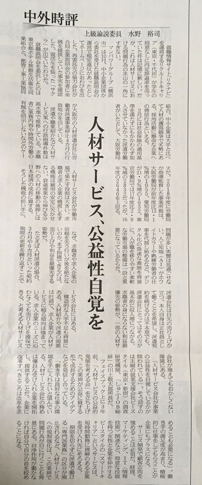 さて、今日は数日前の日経の記事から。