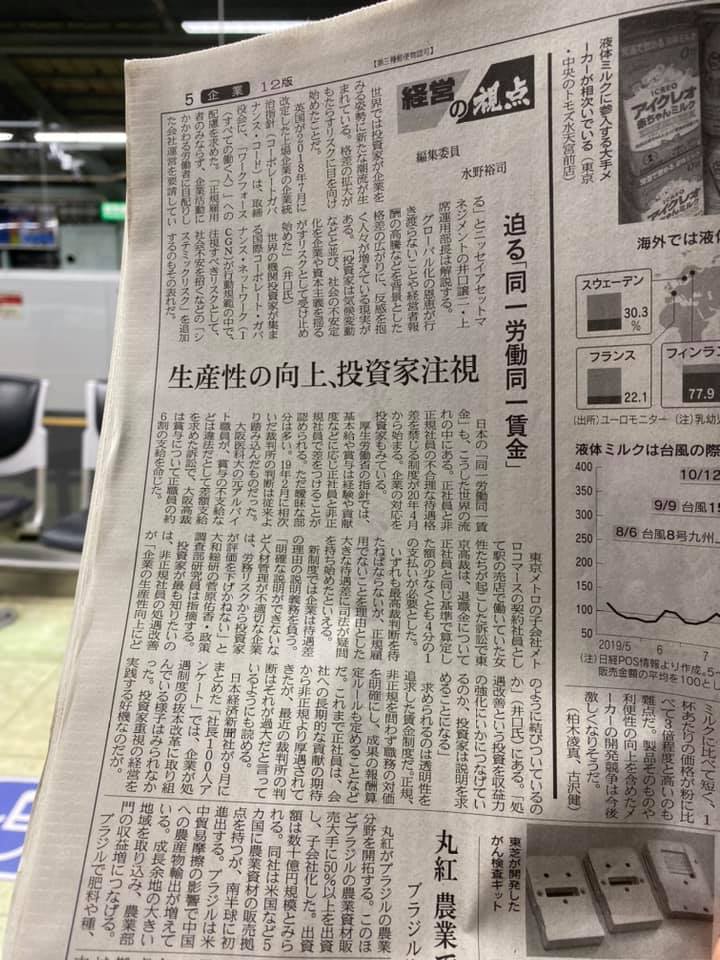 今朝の日経にも出ているように同一労働同一賃金は