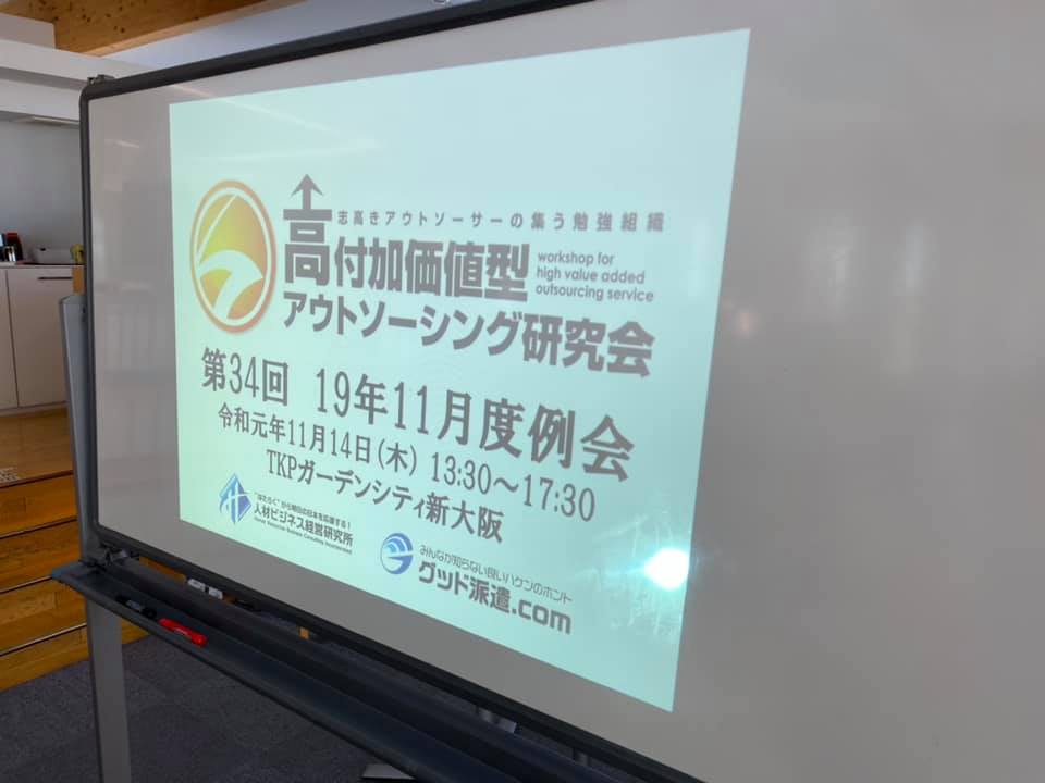さてさて、今日は第34回高付加価値型アウトソーシング研究会 大阪例会