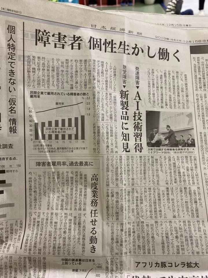 障がい者 個性生かし働く という記事がありました。