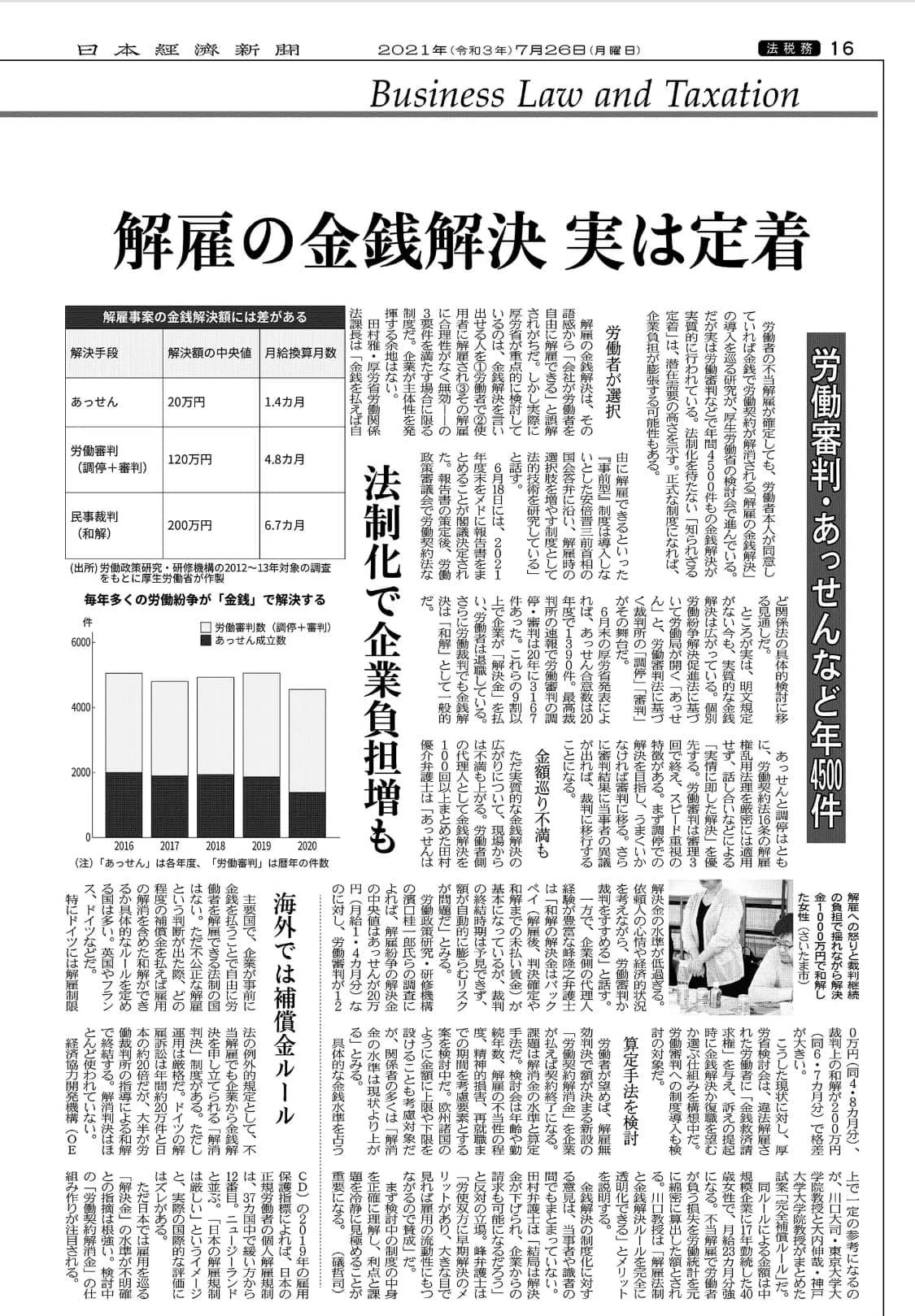 かれこれ、5年以上が議論が進まない「解雇の金銭解消」ですね。