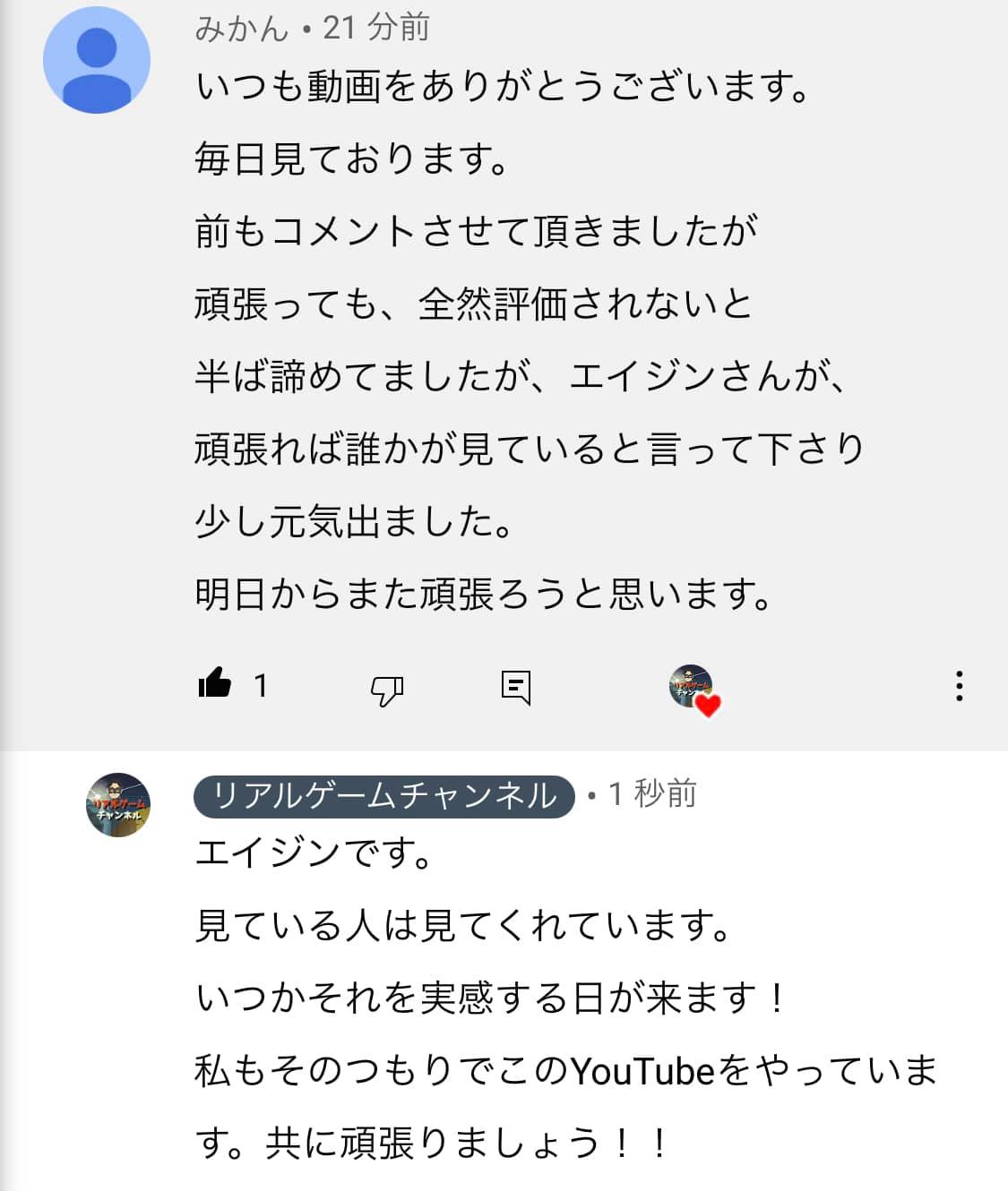 さて、そんなYoutubeですが、今日頂いたコメントがコレ。